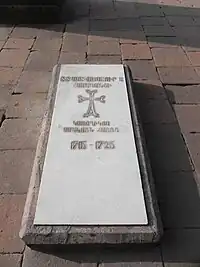 Tombstone of Astvadzadur I, Catholicos of All Armenians, at St. Hripsime church.