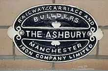The Ashbury Carriage and Iron Company Limited was a manufacturer of railway rolling stock founded by John Ashbury in 1837 in Commercial Street, Knott Mill in Manchester, England, near the original terminus of the Sheffield, Ashton-under-Lyne and Manchester Railway. It moved to Ashton Old Road, Openshaw in 1841 and became a limited company in 1862 as The Ashbury Railway Carriage and Iron Company. After the founder's death in 1866, the company was owned by his son, James Lloyd Ashbury. In 1898 the works covered about 20 acres (8.1 ha) and employed about 1,700.[1]