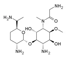 - ↑ Odakura Y, Kase H, Itoh S, Satoh S, Takasawa S, Takahashi K, Shirahata K, Nakayama K (December 1984). "Biosynthesis of astromicin and related antibiotics. II. Biosynthetic studies with blocked mutants of Micromonospora olivasterospora". The Journal of Antibiotics. 37 (12): 1670–80. doi:10.7164/antibiotics.37.1670. PMID 6526735.