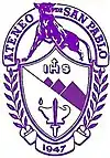 The first is the official seal of the school. Ateneo de San Pablo's seal is different from the school seals of the other Ateneos which all have the shield of the family of St. Ignatius of Loyola.