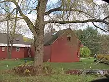 The Atherton Farmstead [3] is located in rural northeastern Cavendish, at the junction of Tarbell Hill and Greenbush Roads. The farm property is 43 acres (17 ha), including more than 20 acres (8.1 ha) located on the west side of Tarbell Hill Road. The farm building complex is accessed via a drive at the junction of the two roads. The main house is a 1+1⁄2-story Cape style wood-frame structure, with a gabled roof, central chimney, and clapboard siding. The interior retains original period Federal style finishes. North of the main house stands a 19th-century barn, with an early 20th-century carriage shed set near Greenbush Road south of the house.[4]