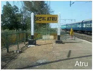Atru railway station is situated on Kota-Bina section of Western Central Railways. Its code is ATRU. It serves Atru town. The station consists of 2 platforms. Passenger, Express, and Superfast trains halt here. It is about 100 km from Kota Junction.