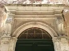 The ornate main doorway is topped by a wrought iron lattice bearing the fleur-de-lys, the symbol of France. The entrance hall and most parts of the building receive natural light from the backyard, and the ground floor is connected to the upper one by a covered staircase. In the middle landing of the staircase there is a carved stone lion, a common feature in palatial buildings at the time.[12] The main hall on the top floor once served as the assembly hall of the Langue.[1]