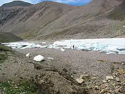 A sheet of aufeis in a glacial valley in Mongolia