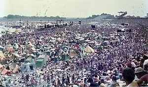 There was a limited number[4] of tickets sold prior to the concert, and when many thousands of additional fans showed up on the day of the performances, those thousands proceeded to crash the fences and rush to the infield. Many of the facilities were overwhelmed due to the crowds, and the weather did not cooperate either, producing a sporadic rain that drenched the concert goers, and turned the infield into a muddy quagmire. However, the music went on as scheduled.[4]
