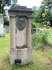 Junkermann died on 15 May 1915 in Berlin after a stroke at the age of 82.[3] The funeral took place on 18 May at the Cemetery III of the Jerusalems- und Neue Kirche in front of Hallesches Tor. The funeral service was conducted by Pastor Eduard Le Seur from Groß-Lichterfelde, a nephew of the deceased. A report in the Berliner Tageblatt regretfully noted that only a few fellow actors attended the funeral.[4] The surviving grave monument to Junkermann is a stele in the form of a columnar aedicule holding an oval portrait relief, the work of sculptor Fritz Richter-Elsner.[5]