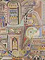 Lesage went on to develop a highly symmetrical style, drafting detailed patterns and monolithic constructions reminiscent of Egyptian and Oriental architectural forms.[1]