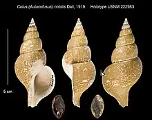 | Shell of Aulacofusus herendeeni (holotype at the Smithsonian Institution) | |
