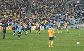 The Australia–Uruguay association football rivalry is a historical rivalry between the Australian and Uruguayan national teams that dates back to 1974[2][3] when Uruguay travelled to Australia for a 2-game series before Australia departed for the 1974 FIFA World Cup. Despite Australia winning both matches, they were marred with foul play by the Uruguayans, which left Australian forward Ray Baartz suffering a stroke after having his carotid artery damaged following an incident with Luis Garisto.[4] The incident cause Baartz to miss the World Cup and retire from the game for health concerns. Between 2001 and 2005 the rivalry would come to the forefront of Australian and Uruguayan relations as both nations played each other in consecutive FIFA World Cup play-off matches. Uruguay would win the 2001 play-offs for the 2002 FIFA World Cup, whilst Australia would win the 2005 play offs for the 2006 FIFA World Cup, which has been called the best moment in Australian sporting history as Australia qualified for the World Cup finals for the first time in 32 years.[5][6] To date, the two nations women's national teams are yet to play each other.