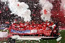 After Austria co-hosted the 2008 European Championship with Switzerland and automatically qualified, Marcel Koller's team managed to qualify for the 2016 European Championship on their own for the first time. This celebration photo was taken on 12 October 2015 after a victory against Liechtenstein.