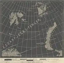 On 14 August 1874 the expedition reached the open sea. The two remaining dogs had to be shot as they became seasick and destabilised the boats.[36] After three days of rowing they reached Novaya Zemlya. They aimed for the depot laid by Wilczek, but after accidentally rowing past it, decided to continue south and rely on the provisions they still had.[37] On 24 August the boats of the Austro-Hungarian expedition met with fishermen from the Russian schooner Nikolai, captained by Feodor Voronin. They were received warmly by the Russian sailors who were greatly impressed by the expedition's Russian Ukase containing instructions to aid them.[38] Weyprecht and Payer agreed with Voronin to deliver the expedition to Vardø in Northern Norway for 1 200 silver rubles, three expedition boats, and two Lefaucheux guns.[39] They reached Vardø on 3 September.[40]