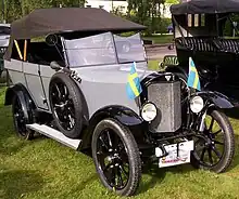 Swedish aircraft manufacturer AB Thulinverken in Landskrona started building automobiles in 1920. The car was based on a design from German manufacturer AGA.[6] The production was limited and when Volvo started production in 1927 Thulin left the automobile industry after some 500 cars had been built.[7]
