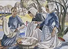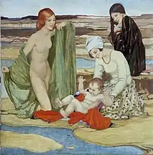 Burleigh exhibited throughout her career, including at the Royal Academy in London, at the Royal Scottish Academy in Edinburgh, the Society of Women Artists, with the New English Art Club, the Royal Cambrian Academy, the Sussex Women's Art Club, the Walker Art Gallery and at the Paris Salon.[1][8] From 1912 to 1945 she was a regular exhibitor at the Royal Academy, which included showing a series of 17 tempera paintings there between 1930 and 1935.[9] Burleigh also contributed to the 1913 Arts and Crafts Society exhibition held at the Grovesnor Galleries.[10]