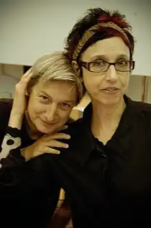 Avital Ronell was born in Prague to Israeli diplomats and was a performance artist before entering academia.[18] She emigrated to New York in 1956. She attended Rutgers Preparatory School and graduated in 1970.[19] As a young immigrant, Ronell later stated, she frequently encountered xenophobia and anti-Semitism.[20] She earned a Bachelor of Arts from Middlebury College, and subsequently studied with Jacob Taubes and Hans-Georg Gadamer at the Hermeneutic Institute at the Free University of Berlin. She received her doctorate of philosophy in German studies at Princeton University in 1979, where her advisor was Stanley Corngold and her dissertation concerned self-reflection in Johann Wolfgang von Goethe, Friedrich Hölderlin, and Franz Kafka.[20] When she met Jacques Derrida at a symposium and he asked her name, she introduced herself as "Metaphysics", and he later wrote that he "found this little game rather clever."[21][22] She subsequently studied with Derrida and Hélène Cixous in Paris. She went on to help introduce Derrida to American audiences by translating his essay on Kafka's "Before the Law", his essay on the law of gender/genre, his lectures on Nietzsche's relation to biography, and a number of other works.[23] Ronell became a close friend of poet and novelist Pierre Alféri, Derrida's son, who later influenced Ronell in the titling of several of her major works.[24] Alféri moved in with Ronell as a teenager following the revelation of his father's adultery.[25]
