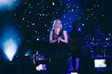 Lavigne promoted the album with a series of live performances. First, she went to Los Angeles' famed Sunset Strip club, "the Viper Room", performing a range of tracks, including "17".[35] On September 21, 2013, Lavigne performed on the iHeart Radio Festival, performing "Here's to Never Growing Up", "Rock n Roll" and other hits.[36] In October 2013, Lavigne performed at "We Day 2013", which took place in Vancouver, British Columbia, Canada. She performed "Let Me Go" with Chad Kroeger, as well as "Girlfriend" and "Here's to Never Growing Up".[37] On November 5, 2013, during the album's release day in the United States, Lavigne performed "Let Me Go" and snippets of "Girlfriend" and "Sk8er Boi".[38] She also performed "Let Me Go" on The Katie Couric Show, on November 8, 2013[39] and on Conan, on November 11, 2013.[40] On December 4, 2013, Lavigne performed on Q102's Jingle Ball, singing "Here's To Never Growing Up", "Girlfriend", "Let Me Go" and "Sk8er Boi".[41]