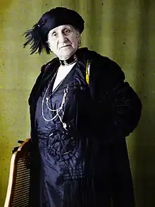 In 1919 Sainte-Croix and the CNFF engaged in a campaign to convince the Allied leaders at the Versailles Peace Conference to address women and their problems in the charter of the new League of Nations, with partial success. The CNFF also worked to convince the French senators to pass the bill for women's suffrage. Sainte-Croix organized the CNFF congress in Strasbourg in October 1919. In 1922 she succeeded Julie Siegfried as president of the CNFF, holding this position until 1932 when she was replaced by Marguerite Pichon-Landry. Sainte-Croix campaigned in 1927 to have women admitted to the police force.[2] She presided over the CNFF's États-Généraux du Féminisme[lower-alpha 2] congresses in 1929, 1930 and 1931. These congresses focused in successive years on women's legal rights, economic standing and position in the colonies.[7]
