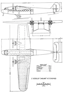 - Two 450 hp (336 kW) Armstrong Siddeley Jaguar VID engines mounted on the wings, one built.[1][2]