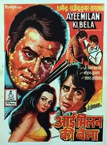 Ayee Milan Ki Bela (transl. The Moment of Meeting Has Come) is a 1964 Indian Hindi film directed by Mohan Kumar. The film was produced by J. Om Prakash. The music is by Shankar Jaikishan. The movie has stars; Rajendra Kumar, Saira Banu, Shashikala and Dharmendra in one of his rare grey characters. The film became a "super hit" at the box office.[1] The film was remade in Tamil as Oru Thaai Makkal.[2]