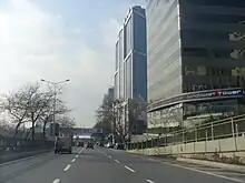 Büyükdere Avenue (Turkish: Büyükdere Caddesi) is a major avenue which runs through the districts of Şişli (Esentepe quarter), Beşiktaş (Levent quarter) and Sarıyer (Maslak quarter) on the European side of Istanbul, Turkey. It begins at Şişli Mosque and runs in an eastward direction partly under the viaduct of the inner-city motorway O-1 through Mecidiyeköy, Esentepe, until reaching Zincirlikuyu; where it joins with Barbaros Boulevard and turns northward passing through Levent, Sanayi Mahallesi, Maslak and by the Fatih Forest, ending at the Hacıosman Slope on the Sarıyer district border. Its total length is 14 km (8.7 mi). From Zincirlikuyu to Maslak, it forms a border line between the districts of Kağıthane in the east and Beşiktaş in the west. It is named after the Büyükdere neighborhood of Sarıyer district, where it connects to. It is a major artery of the Istanbul Central Business District, which is not located in the historic center of the city.[1]