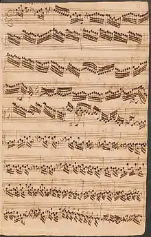 Toccata, Adagio, and Fugue in C major (BWV 564) is an organ composition by Johann Sebastian Bach. As is the case with most other organ works by Bach, the autograph score does not survive. The earliest manuscript copies were probably made in 1719–1727. The title of the piece in these copies is given, as expected of organ literature of the time, simply as Toccata in C major (or more precisely, Toccata ped: ex C in one source and Toccata ex C♮ pedaliter, referring to the obbligato pedal part).[1] The piece is an early work, probably composed in the mid-to-late Weimar years, i.e. 1710–1717. It shares some similarities with other toccatas composed around the same time, such as BWV 538, BWV 540, and others: all show the influence of concerto style and form.[2]