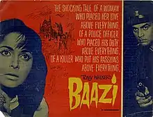 Baazi is a 1968 Bollywood thriller film directed by Moni Bhattacharjee. It stars Dharmendra, Waheeda Rehman, Johnny Walker, Helen. The music of the film was composed by Kalyanji-Anandji.
