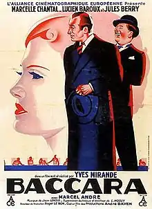 Baccara is a 1935 French comedy film directed by Yves Mirande. The film's music was composed by Jean Lenoir.[3]