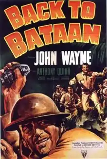 Back to Bataan is a 1945 American black-and-white World War II war film drama from RKO Radio Pictures, produced by Robert Fellows, directed by Edward Dmytryk, that stars John Wayne and Anthony Quinn.[3] The film depicts events (some fictionalized and some actual) that took place after the Battle of Bataan (1941–42) on the island of Luzon in the Philippines. The working title of the film was The Invisible Army.[4]