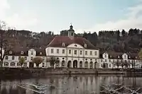 Bad Karlshafen (German: [baːt kaʁlsˈhaːfn̩] ) is a baroque, thermal salt spa town in the district of Kassel, in Hesse, Germany. It has 2300 inhabitants in the main ward of Bad Karlshafen, and a further 1900 in the medieval village of Helmarshausen. It is situated at the confluence of the Diemel and Weser rivers, 15 km south of Höxter, and 37 km north of Kassel.