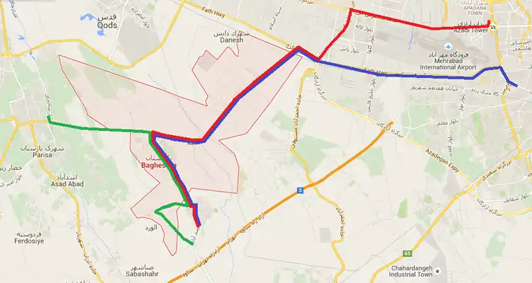 | Service area | Baghestan, Shahriar County, Tehran Province |