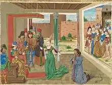 Bagoas pleads on behalf of Nabarzanes, by Master of the Jardin de vertueuse consolation and assistant (Flemish, active 3rd quarter of 15th century). (1450–1475)