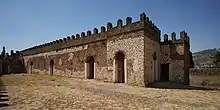 Bakaffa added several new buildings to the capital city of Gondar. He is credited with the construction of a vast banqueting hall on the north side of the Royal Enclosure, which might be the structure where he held a lavish feast for all in 1725; next to it stands Mentewab's Castle, which might have been built by Bakaffa's son and heir Iyasu II, but definitely was constructed before Mentewab retired from the capital to her palace at Qusquam in 1750. These are last new buildings erected in the Royal Enclosure.[8]