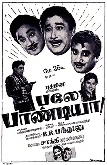 Bale Pandiya (transl. Bravo Pandiya) is a 1962 Indian Tamil-language comedy film produced and directed by B. R. Panthulu. The film stars Sivaji Ganesan, M. R. Radha and Devika, with K. Balaji, Vasanthi and Sandhya in supporting roles. It revolves around the title character having to evade a lookalike wanting to kill him for insurance money.