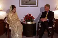 After the Biden administration imposed visa sanctions on Bangladeshi officials for human rights and other reasons, it was severely criticized by Prime Minister Sheikh Hasina.[38] Peter Haas, the US ambassador to Bangladesh, was also accused of interfering its internal affairs. Some scholars pointed out that the United States has always treated Bangladesh with double standards.[39][40]
