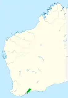 Banksia lemanniana is found near the southern coast of Western Australia, most of its population protected within Fitzgerald River National Park. Outside the park, it reaches the Ravensthorpe Range to the northeast and the rabbit-proof fence to the east, as well as isolated populations westwards as far as Pallinup estuary.[4] The annual rainfall is 500–600 mm (20–24 in).[3] It is found on the tops and slopes of hills as well as flatter areas on rocky or lateritic soil, as well as sand, in mallee scrubland or heath. Banksia lemanniana is relatively secure as much of its range lies within a National Park, and it is not a species collected for the cut flower industry.[4] It is hence classified as Not Threatened under the Wildlife Conservation Act of Western Australia.[21]