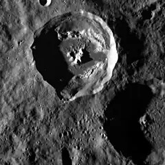 The floor and walls of the crater have hollows, which appear bright when the sun is high in the sky.
