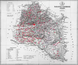 Baranya (Hungarian: Baranya, Croatian: Baranja, Serbian: Барања / Baranja, German: Branau) was an administrative county (comitatus) of the Kingdom of Hungary. Its territory is now divided between present-day Baranya County of Hungary and Osijek-Baranja County of Croatia. The capital of the county was Pécs.