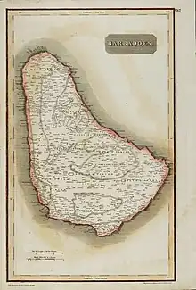 The earliest dated reference to cricket in Barbados is 1806, however cricket had been played in "all the West Indian islands from a quite early time".[13] Freed slaves played cricket from the mid-18th century and there are several existing reports of plantation owners encouraging slaves to play cricket.[14] Barbados suffered a highly destructive hurricane in October 1780 which obliterated most palms, windmills and slave huts. The Buckle engraving predates that event. However the three stumps on the Buckle would indicate a date after 1777, when the middle stump was added to the wicket, which had previously had only two stumps.[8]