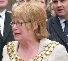 In the 1992, 1997 and 2001 General Elections, she was an unsuccessful candidate in the Bolton West Constituency.[6][7] During her political career, she was Mayor of Horwich 1996–1997,[1] Leader of Bolton Council 2004–2006,[8][9] and Mayor of Bolton 2007–2008.[1][10]