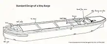 There is little evidence of barge building on the Wey before 1876. Many of the barges used before then were constructed at the Honeystreet Wharf near Devizes. The Kennet and Avon Canal opened in 1810 which allowed the passage of barges to enter the Thames and thus the Wey. The first barges from here to be used on the Wey were known as "West Country" or "Western" barges[1] which were designed to be used on the western waterways such as the Kennet and Avon Canal and the Thames and Severn Canal. These became the standard for the Wey Navigation.