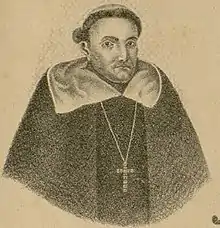 Bartolomé de Ledesma was born on February 16, 1604, in Salamanca, Spain and ordained a priest in the Order of Preachers.[3][4][5] On October 20, 1580, Pope Gregory XIII appointed him Bishop of Panamá[4] (some sources state that he did not accept the nomination).[3] On June 3, 1583, he was consecrated bishop by Diego de Romano y Govea, Bishop of Tlaxcala (Puebla de los Angeles).[4] As there was no official governor during his term as bishop of Panama, he was instrumental in governing the province with the Audencia Real (high court).[2] He reached out to the Cimarrónes (free blacks) who were living outside of the Crown's jurisdiction and facilitated their incorporation into the colony.[2] In 1581, a treaty was signed between the Cimarrónes which gave them the land which they possessed and allowed them to found and settle the city of Pacora, near Panama City, as a commercial center.[2] He also helped to lessen congestion in Panama City by founding the town of Penonomé and establishing parishes in Natá and Olá.[2] In June 1584, Pope Gregory XIII appointed him the third Bishop of Antequera, Oaxaca, where he served until his death on February 16, 1604.[4]