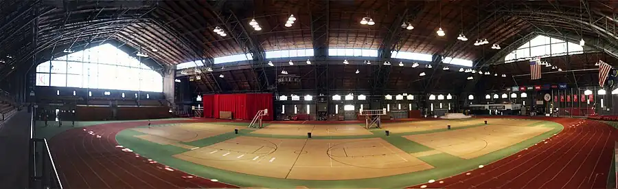 Barton Hall is an on-campus field house on the campus of Cornell University in Ithaca, New York. It is the site of the school's indoor track facilities, ROTC offices and classes, and Cornell Police. For a long time, Barton Hall was the largest unpillared room in existence. The interior of the building covers almost 2 acres (8,100 m2), and includes a 1/8 mile (200m) indoor track.[1]