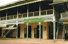 By 1920, nationalist sentiments ran high in Burma. During this period, a wealthy teak merchant Thar Nyin, the father of a key YMBA leader Chit Hlaing, donated a two-storey teak building to the school named U Thar Nyin Dhammayon, which remains today. One of the pioneers of Burmese literature, Sein Tin, commonly known by his pen name Theippan Maung Wa, matriculated from the school in 1919. Toward the end of colonial era, the nationalist movement continued to gain momentum and the school appointed a well-known Burmese nationalist scholar Hla Thwin as its headmaster.[6] In March 1929, the father of Indian independence movement, Mahatma Gandhi visited Moulmein. In a conference held at the Buddhaghosa School on 13 March 1929, Gandhi addressed to a crowd of 25 Buddhist monks, 100 Burmese women, 800 Burmese men and 300 Indians. Gandhi expressed great pleasure for preponderance of Burmans at the meeting.[7][8]