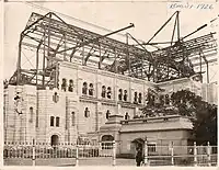 This was destroyed in a fire on March 29, 1922.[4] The present-day basilica was built in 1926 on the site of the prior church. Architects Maxime Roisin, Louis N. Audet and Joseph-Égilde-Césaire Daoust collaborated on the project from 1923 to 1931. After the end of the Great Depression, work on the interior resumed in 1937, and was finally completed in 1946.[8]