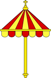 Church symbols that are important to basilicas include the Umbraculum, the tintinnabulum (bells) and the symbol of tiara and keys that is on the Vatican flag. As of the time of elevation to basilica status, Nalty commissioned artists to design and produce the symbols to be used by the Basilica of St. Stephen.[1]