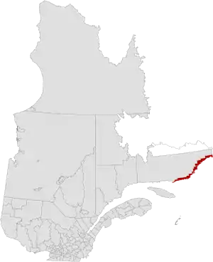 Basse-Côte-Nord Territory (French: Territoire de la Basse-Côte-Nord, meaning "lower north shore") was a territory equivalent to a regional county municipality (TE) in eastern Quebec, Canada. The territory, whose geographical code was 982, was formed in 2002 when it separated from the Minganie Regional County Municipality and was superseded by Le Golfe-du-Saint-Laurent Regional County Municipality that was formed in July 2010.[1]