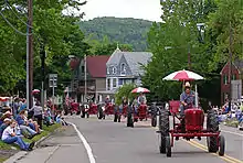 Antique tractors in Bath, New York's annual dairy parade.