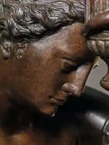 The key for the understanding of the two versions are the many differences in detail between them. Alexander Rudigier has demonstrated, following the standard method of Giovanni Morelli (1816-1891), that in every detail where the bronze diverges from the marble, this new formulation finds close analogies in other works by the artist in bronze and clay.[11]