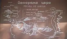 Schematic diagram of panorama of Mount Cer, showing position of Čokešina Monastery