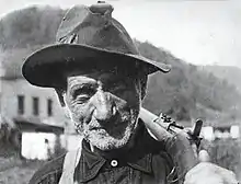 On August 30, Morgan appointed Colonel William Eubanks of the West Virginia National Guard to command the government and volunteer forces confronting the miners.[34] Sporadic gun battles continued for a week, with the miners at one time nearly breaking through to the town of Logan and their target destinations, the non-unionized Logan and Mingo counties to the south. Gatling guns and machine guns were employed by both sides, along with additional firepower.[35][36][37] Chafin's forces consisted of 90 men from Bluefield, West Virginia; 40 from Huntington, West Virginia; and about 120 from the West Virginia State Police.[38] Three of Chafin's forces, two volunteers and a deputy sheriff, were killed,[39][40][41][38] and one miner was fatally wounded.[42]