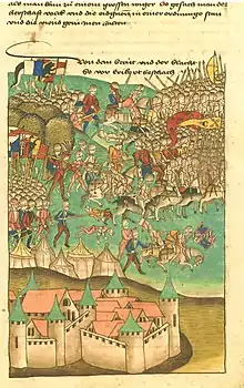 Subsequently, on 16 November Héricourt's garrison surrendered and was occupied by Austrian troops.[1] The Burgundians had lost more than three thousand men in these battles, while the Swiss had few losses.[5] The inhabitants of the city were allowed to leave the village and take their belongings with them. The castle was handed over to Duke Sigismund.